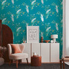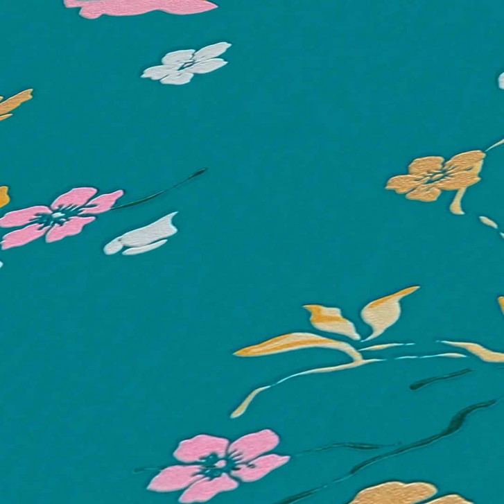 Blumentapete mit Vögeln - Tapete Pfau Türkis Gelb - Florale Tapete Designer