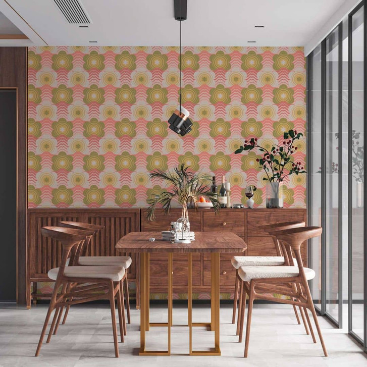 Blumentapete Rosa Grün - florale Retro-Tapete - Vintage Vliestapete