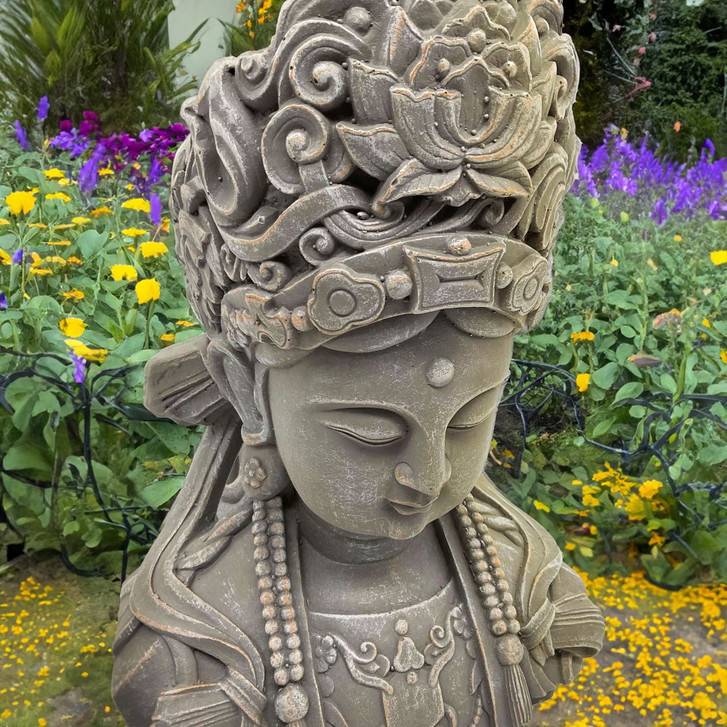 Buddha Büste aus Kunststein, betongrau | 34x21x44 cm