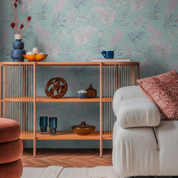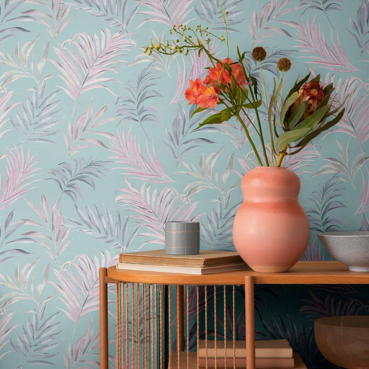 COSMOPOLITAN florale Tapete Türkis Rosa - Vliestapete mit Blättern Wohnzimmer