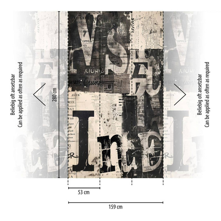 COSMOPOLITAN Fototapete Zeitungsprint Schwarz Weiss Typografie Design Vliestapete