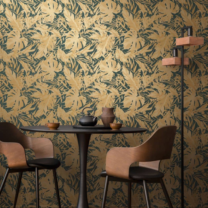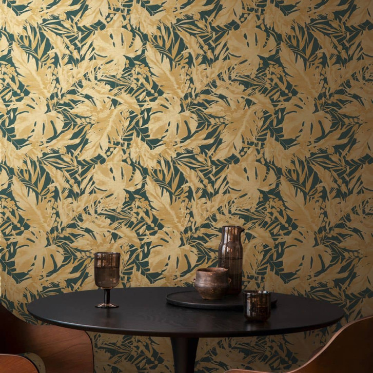 COSMOPOLITAN Tapete Dschungeloptik Petrol Goldbeige - Designer Vliestapete