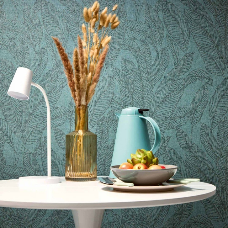 COSMOPOLITAN Vliestapete mit Blättern Petrol-Blau Grün - natürliche Mustertapete