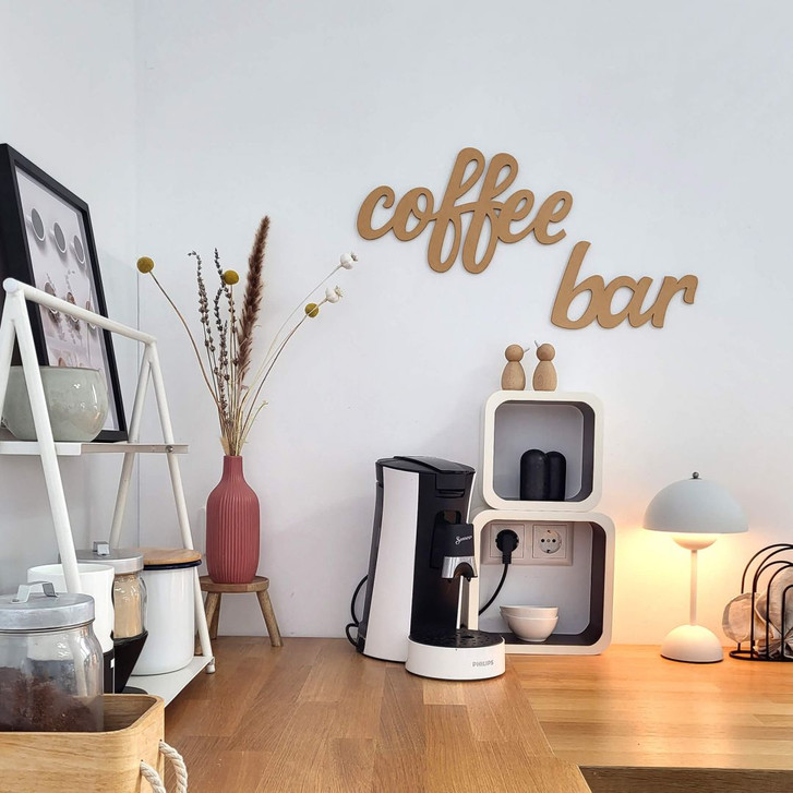 Ein kleines Schwätzchen halten, ein Buch lesen oder sich einfach eine Auszeit bei einem Kaffee gönnen. Ein Café ist ein grossartiger Ort zum Entspannen. Es geht nicht nur um das Getränk allein, sondern darum, Zeit allein oder mit Freunden zu verbringen und sie zu geniessen. Und diese gemütliche Café-Atmosphäre kannst du dir nach Hause holen! Bringe die Buchstaben-Aufkleber „Kaffeebar“ in der Küche an und schaffe eine gemütliche Atmosphäre für dich und deine Lieben. Diese dekorativen Buchstaben helfen dir, eine warme und gemütliche Atmosphäre zu schaffen und verleihen deiner Wand gleichzeitig einen trendigen und stilvollen Look.
