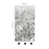 Das AYANA-Tapetendesign zeigt eine Dschungelszene, die die üppige und exotische Natur des tropischen Regenwaldes in monochromen Farben darstellt.Produktinformation: