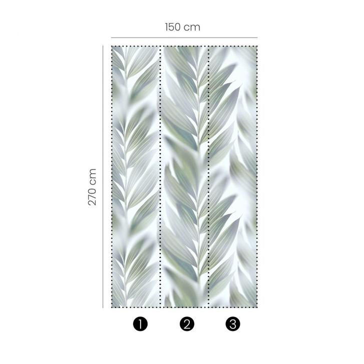 Die Kombination aus zarten Blattzweigen und einem Nebeleffekt schafft eine geheimnisvolle Atmosphäre in der Fototapete FIONA.Produktdetails: