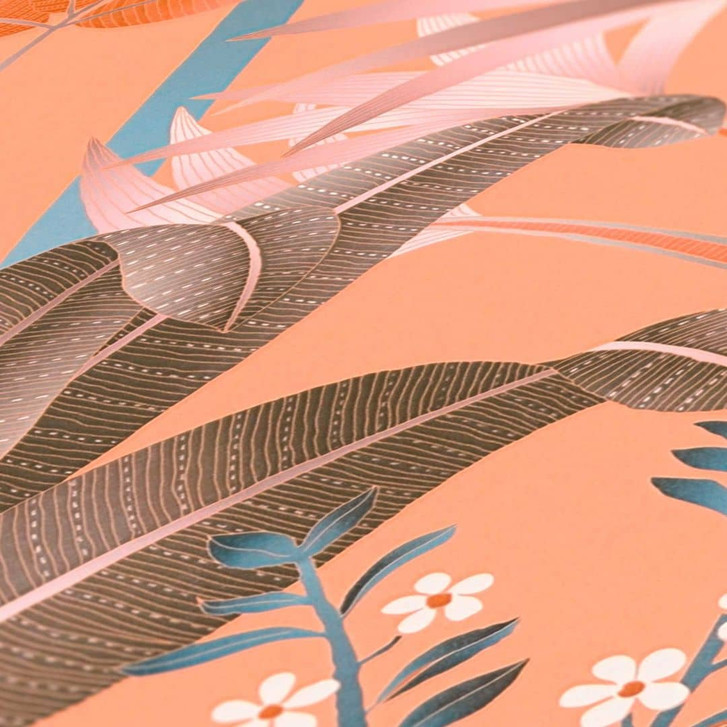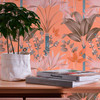 Dschungel-Tapete im grafischen Stil Orange bunt - Vliestapete Palmenblättern