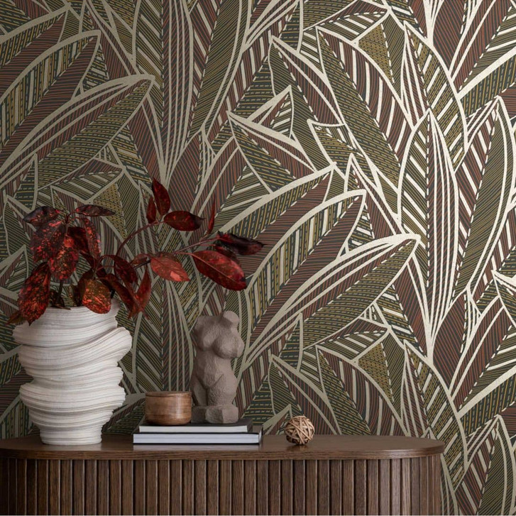 French Affair - Exotische Blätter in Braun, Schwarz und Gold – für eine ausdrucksstarke und stilvolle Wandgestaltung.