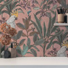 Dschungel-Tapete mit Kakadu - Vliestapete in Rosa Grün Gelb - Exotische Mustertapete