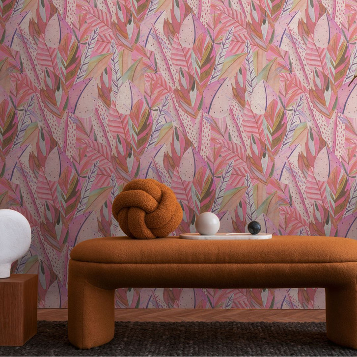 Anna D'Andrea - Kräftig bunte Blättertapete in Pink und Lila