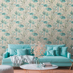 Dschungel-Tapete Ton in Ton Blau Grün - Vliestapete floral mit Blättern