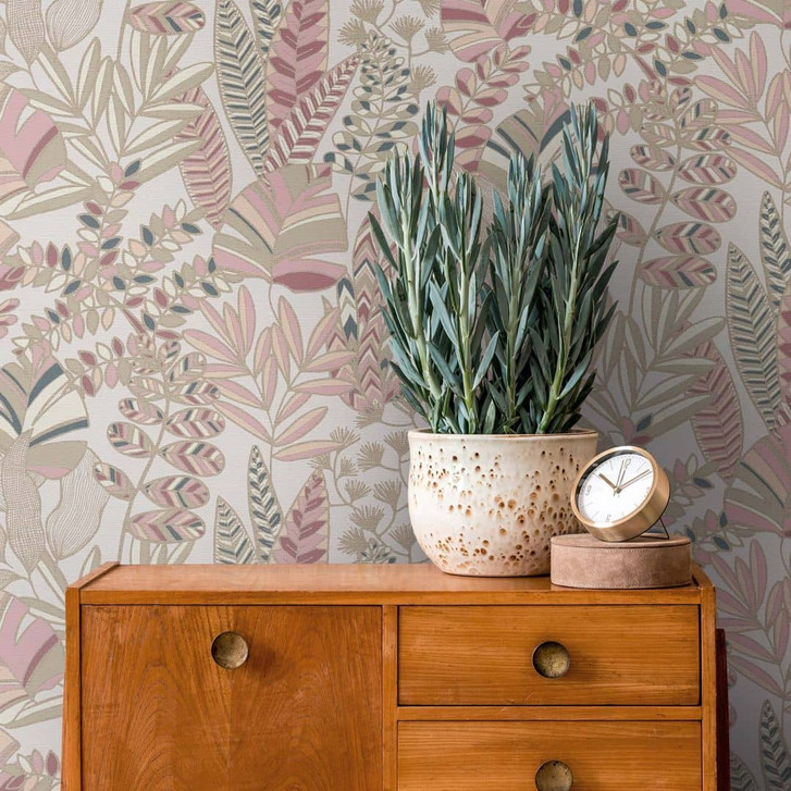 Dschungel Vliestapete Pflanzen Rosa Weiss Moderne Tapete Blätter