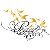 Das Design, das vom berühmten LA Ink-Tattoo-Studio in Los Angeles entworfen wurde, zeigt eine verspielte schwarze Schrift des Wortes „Peace“. Darüber fliegen neun goldene Tauben als Symbol des Friedens. Es ist in fünf verschiedenen Grössen erhältlich, um Fenster zu schmücken.