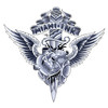 Das Fensteraufkleber aus der Kollektion des berühmten Tattoo-Studios „Miami Ink“ zeigt in Schwarz-Weiss ein menschliches Herz, das von einem Schwert durchbohrt wird, mit der Aufschrift „Miami Ink“ und gleichzeitig mit Engelsflügeln fliegt. Aus den Eintritts- und Austrittswunden tritt schwarzes Blut aus. Das Motiv ist in 4 Grössen erhältlich.