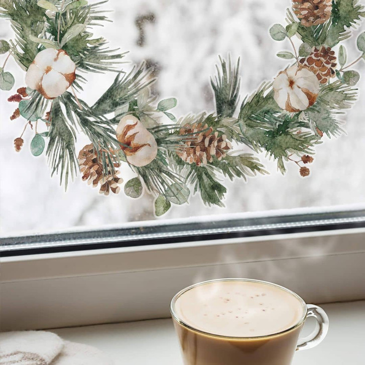Winterliche Dekoration: Tannenkranz zum Aufkleben auf Glas, Spiegel und andere glatte Oberflächen
