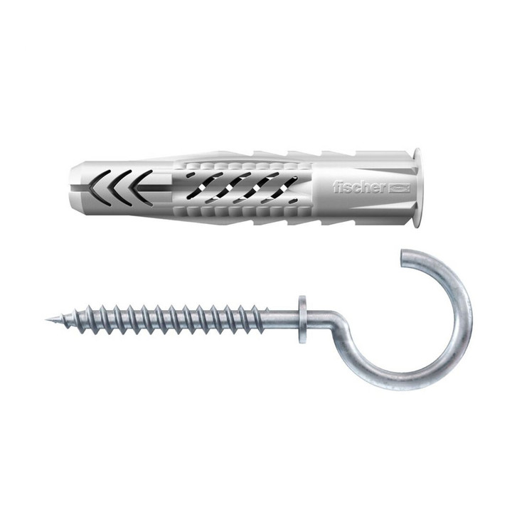 Die diagonalen Verbindungsstege des UX sorgen für eine präzise Führung der Schrauben. Zusätzlich sorgt der sägezahnförmige Verdrehschutz dafür, dass sich das Element im Bohrloch nicht dreht. Dies garantiert eine hohe Montagesicherheit. Fischer-Rundhaken und Universaldübel bieten für viele Anwendungen eine passende Lösung.