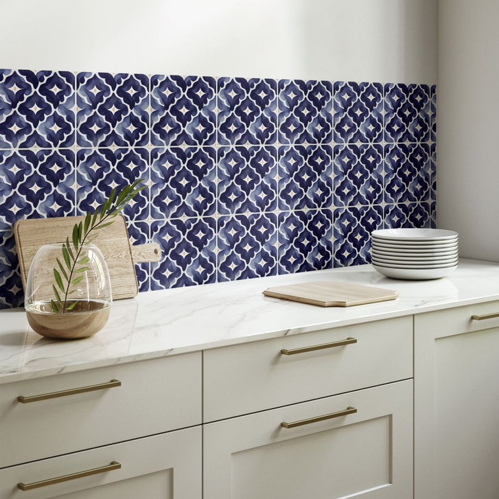 Verleihe deinen Räumen mit diesen Fliesenaufklebern in intensivem Blau eine frische und elegante Atmosphäre. Das florale Muster, das an handgemalte Aquarelle erinnert, verleiht deinem Zuhause einen Hauch von Kunst und Individualität. Die Kombination aus tiefen Blautönen und dezenten Akzenten schafft einen einzigartigen Look, der sowohl in klassischen als auch in modernen Einrichtungsstilen beeindruckt.