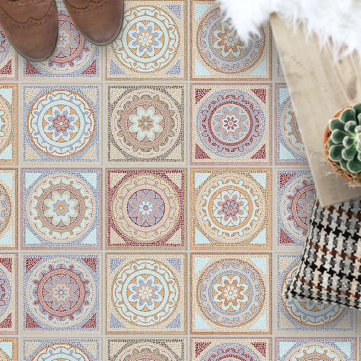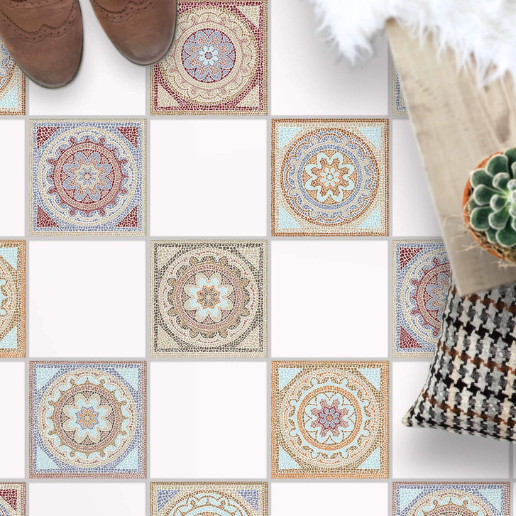 Unsere Fliesenaufkleber Boden Mosaik Afrika sind passgenau zugeschnitten und der Blickfang in Küche & Bad. Die Klebefliesen sind hochwertige, selbsthaftende Vinylfolien (seidenmatt) und können dank Bubble-free Technologie kinderleicht verklebt werden.