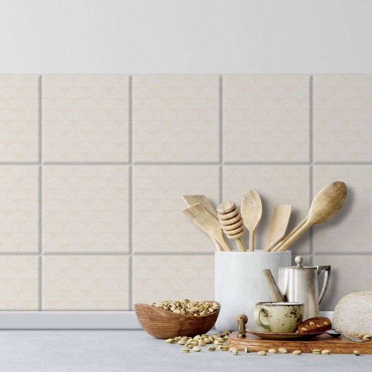 Cremefarbene Fliesenaufkleber im Boho-Stil