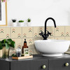 Vintage-Fliesenaufkleber mit Fischgrätmuster bringen frischen Wind in Nassbereiche
