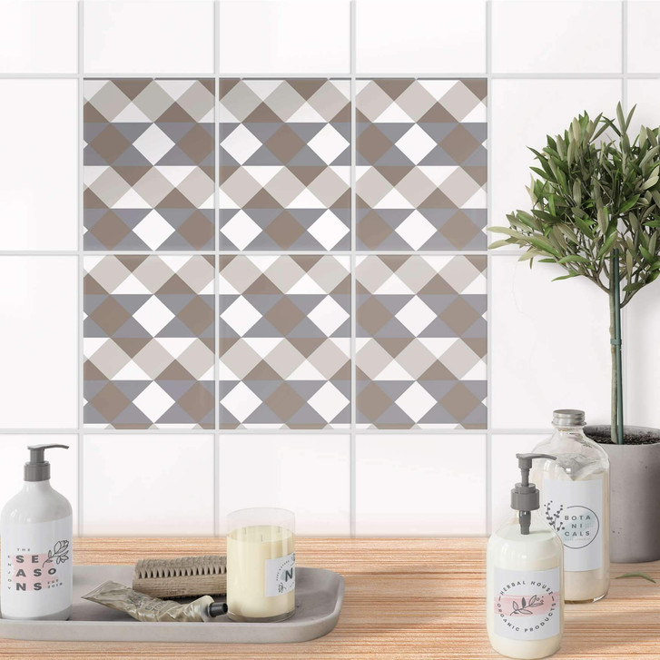 Fliesenaufkleber hoch - Triangle Pattern - Grau - 6er Set