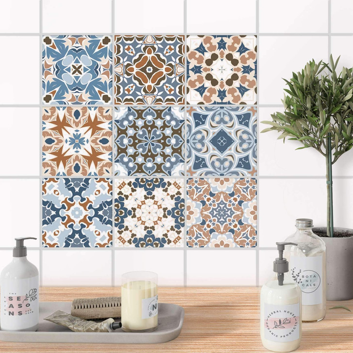 Diese Fliesenaufkleber verzieren die Spiegelfläche eines Schranks. Sie sind wirklich toll, sehr einfach aufzutragen und auch wieder zu entfernen.