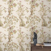 History of Art 2 - Elegante Mustertapete mit zarten Blumen und Schmetterlingen auf beigem Hintergrund.