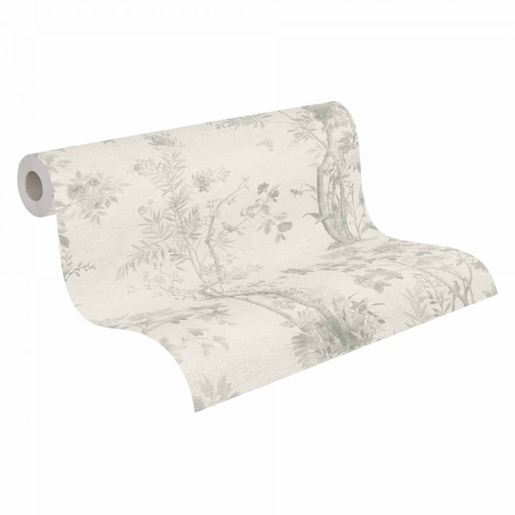 Florale Mustertapete mit Schmetterlingen Hellgrau Weiss - Vliestapete Naturmotiv