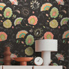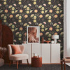 Florale Tapete Bunt - Blumen Tapete Schwarz - Naturtapete Büro Pflanzen