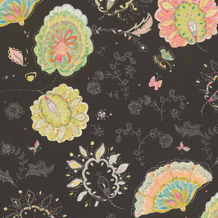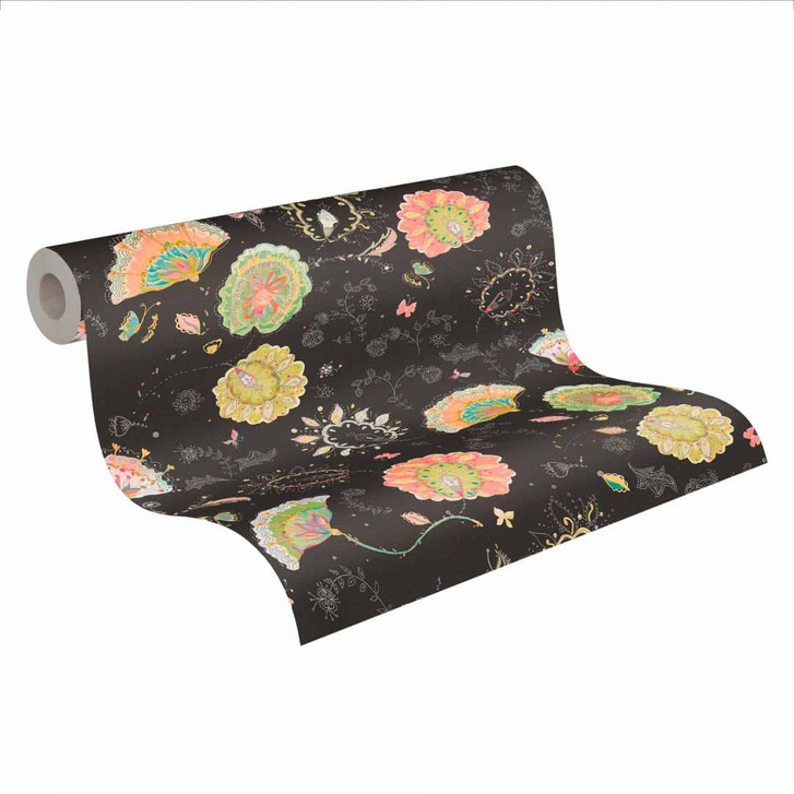 Florale Tapete Bunt - Blumen Tapete Schwarz - Naturtapete Büro Pflanzen