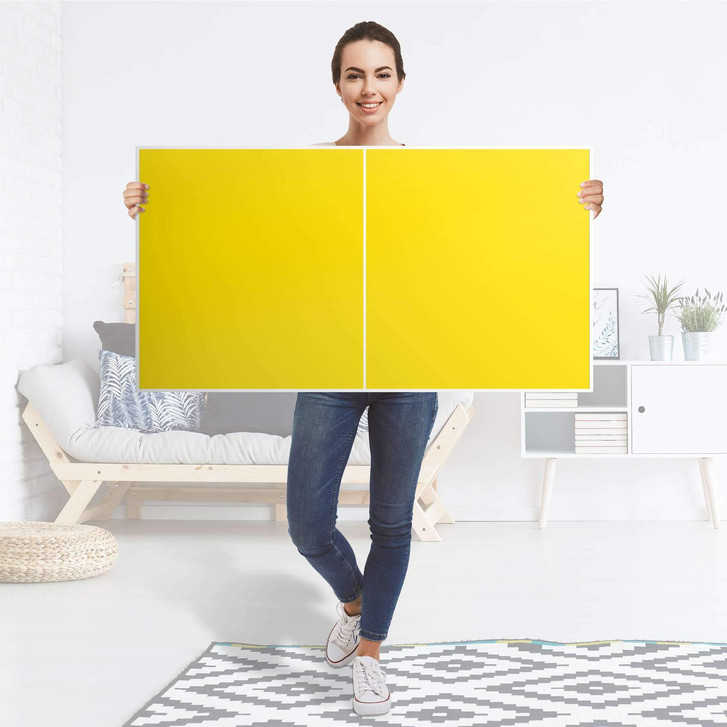 Unsere Folie Gelb Dark für das Besta Regal 2 Türen (quer) ist der Blickfang in jedem Wohnzimmer. Die Dekofolien sind hochwertige, selbsthaftende Vinylfolien (seidenmatt) und können dank Bubble-free Technologie kinderleicht verklebt werden.