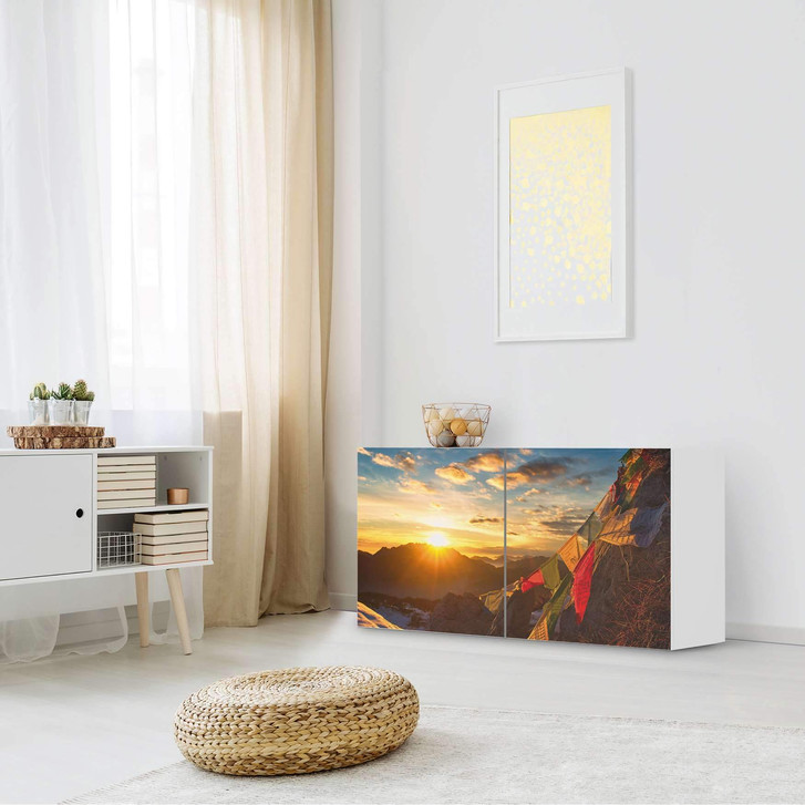 Unsere Folie Tibet für das Besta Regal 2 Türen (quer) ist der Blickfang in jedem Wohnzimmer. Die Dekofolien sind hochwertige, selbsthaftende Vinylfolien (seidenmatt) und können dank Bubble-free Technologie kinderleicht verklebt werden.