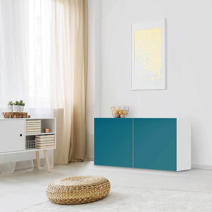 Unsere Folie Türkisgrün Dark für das Besta Regal 2 Türen (quer) ist der Blickfang in jedem Wohnzimmer. Die Dekofolien sind hochwertige, selbsthaftende Vinylfolien (seidenmatt) und können dank Bubble-free Technologie kinderleicht verklebt werden.
