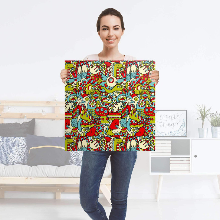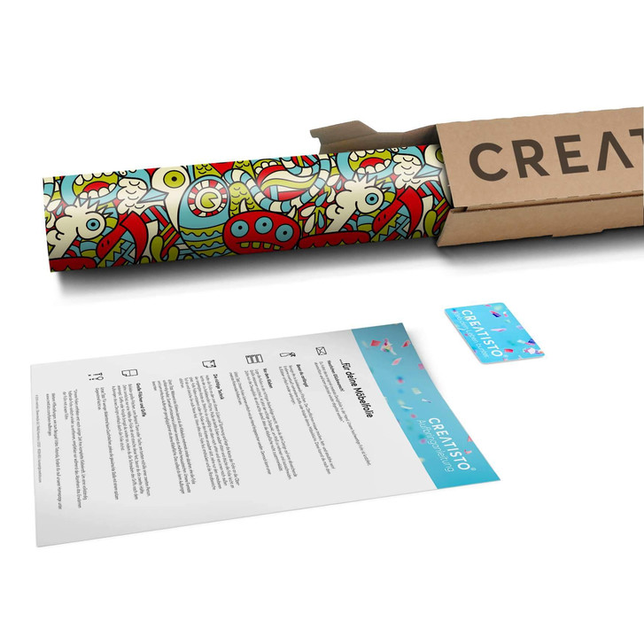Unser Folienbogen Monster Doodle (Grösse: 60x60cm) ist die Klebefolie für alle Selbermacher & Bastler. Die Dekofolien sind hochwertige, selbstklebende Vinylfolien (seidenmatt) und können dank Bubble-free Technologie auf allen glatten Oberflächen kinderleicht verklebt werden. Ein Zuschnitt ist problemlos möglich.