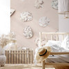 Die Fototapete verleiht dem Wohnbereich eine natürliche Note, die beruhigend und entspannend wirkt. Die cremefarbene Wanddekoration verleiht dem Raum eine gemütliche Atmosphäre, die zum Entspannen einlädt.