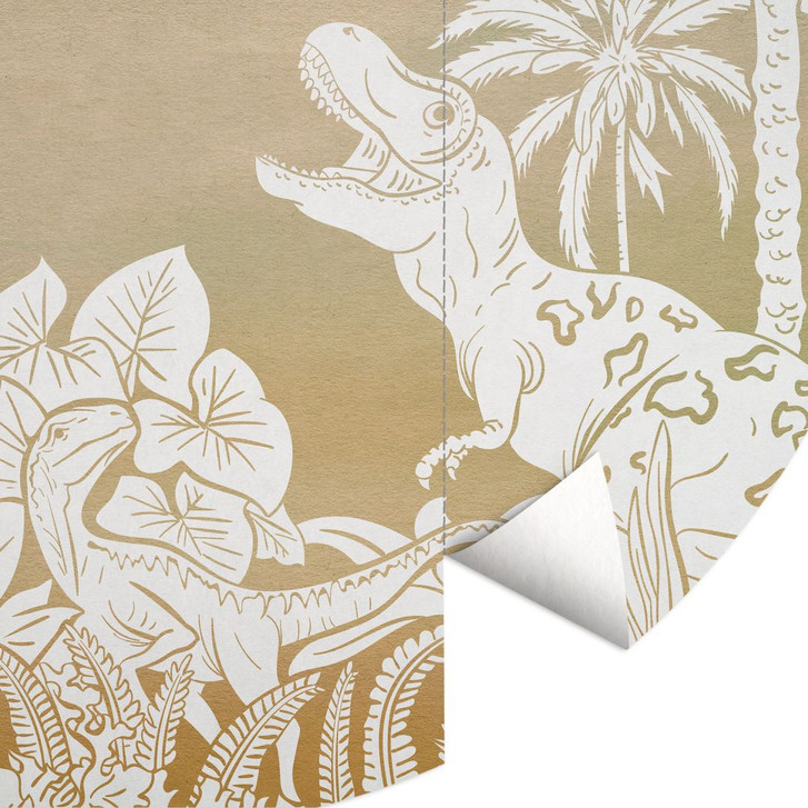 Entdecke die Magie der prähistorischen Welt mit dieser aussergewöhnlichen runden Fototapete von Kikki Belle. Die kunstvoll gestalteten Dinosauriersilhouetten und exotischen Pflanzen fügen sich harmonisch in einen sanften Farbverlauf von Grün zu warmen Erdtönen ein. Dieses Design bringt ein Gefühl von Abenteuer und Eleganz direkt in deine Räume und bietet ein aussergewöhnliches Highlight für deine Wandgestaltung.