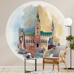 Verleihe deinem Wohnzimmer mit dieser Fototapete einen modernen Touch! Deine Wohnungseinrichtung spiegelt deine Persönlichkeit wider und schafft eine einzigartige Umgebung, in der du dich wohlfühlen kannst. Die „Love your City“-Kollektion ist exklusiv bei trenddeko.ch erhältlich. Der Künstler zeigt die Wahrzeichen der Stadt: schmale Häuser mit Giebelfassaden und einen Kanal mit kleinen Schiffen.