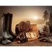 Hier finden Angelfans das perfekte Motiv! Mit diesem Angler-Stillleben vor dem See im Hintergrund kannst du deine Lieblingswände grossflächig dekorieren. Zu sehen sind unter anderem Gummistiefel, Anglerhut, Angelschnur und -spule sowie ein Picknickkorb.