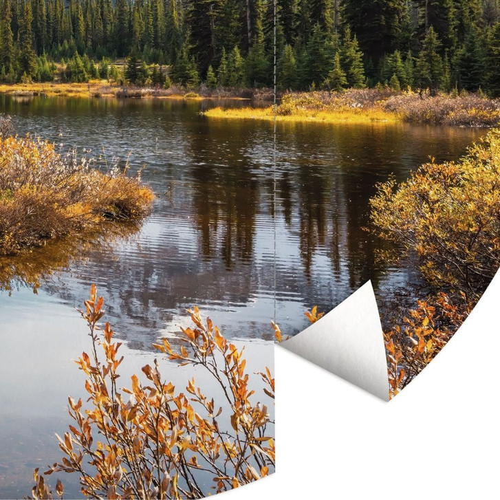 Diese Tapete im Rundformat bringt die majestätische Ruhe und natürliche Eleganz einer unberührten Berglandschaft in Ihr Zuhause. Der kristallklare See im Vordergrund spiegelt die warmen Herbstfarben wider, während im Hintergrund die schneebedeckten Gipfel und der endlose Himmel die Szenerie dominieren. Die Komposition strahlt eine perfekte Harmonie zwischen Erde und Himmel aus.