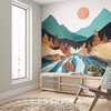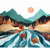 Diese aussergewöhnliche Fototapete von SpaceFrog Designs bringt die harmonische Ästhetik einer Berglandschaft in Ihr Zuhause. Das Motiv zeigt die dynamische Bewegung eines Flusses auf seinem Weg durch das Tal, flankiert von goldenen Felsen und herbstlich gefärbten Bäumen. Die kräftigen Farben in Türkis, Kupfer und Gold schaffen ein harmonisches Zusammenspiel und sorgen für eine lebendige Atmosphäre.