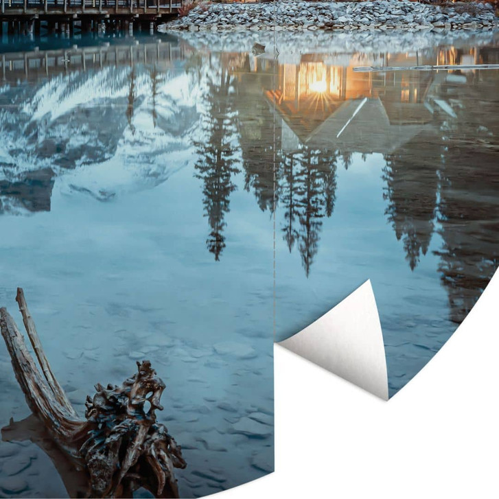 Fototapete Bergidylle am abendlichen See - Bing Li - Rund - Selbstklebend/Vlies