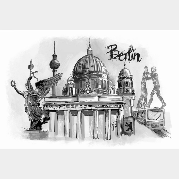 Möchtest du dein Zuhause neu dekorieren und brauchst Inspiration? Dieses Wandbild verleiht dir einen neuen, frischen Look! Die „Love your City“-Kollektion ist exklusiv bei trenddeko.ch erhältlich. Der schwarz-weisse Kunstdruck zeigt die Wahrzeichen Berlins: die Goldelse auf der Siegessäule, den Fernsehturm, das Brandenburger Tor und den Berliner Dom, die S-Bahn und die Wasserstatue Molecule Man vor den Treptowers.