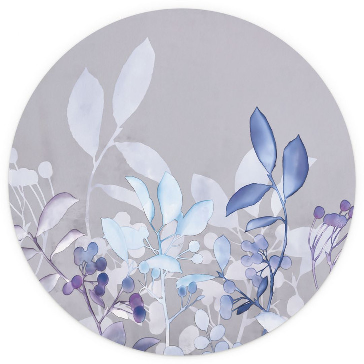 Diese runde Fototapete von Andrea Haase bringt die Schönheit der Natur direkt in Ihr Zuhause. Die Kombination aus sanften Blautönen und zarten violetten Akzenten, eingebettet in filigran gezeichnete Pflanzenmotive, schafft eine ruhige und harmonische Atmosphäre. Der graue Hintergrund bringt die floralen Aquarell-Elemente perfekt zur Geltung und verleiht deinen Räumen eine elegante, moderne Note.
