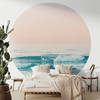 Mit dieser aussergewöhnlichen runden Fototapete holst du dir die Weite des Meeres in einer neuen, kreativen Form in dein Zuhause. Das Motiv zeigt sanfte Wellen des blauen Meeres, die unter einem zarten, rosafarbenen Himmel auf die Küste treffen. Die runde Form der Tapete wirkt wie ein Fenster, das dir einen einzigartigen Blick auf die beruhigende Natur bietet und deine Räume optisch aufwertet. Der warme pastellfarbene Himmel und das erfrischende Blau des Wassers schaffen eine harmonische und entspannende Atmosphäre, die sich perfekt für Schlafzimmer und Wohnbereiche eignet.