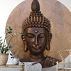 Lass dich von kreativen Motiven inspirieren und gestalte deine persönliche Komfortzone zum Entspannen und Geniessen. Die Fotokunst sorgt für einen überraschenden Blickfang. Der Buddha als Fotomotiv sorgt für Ruhe und Ausgeglichenheit in den Räumen. Nicht nur im Thema Religion spielt die Buddhafigur eine wichtige Rolle – auch in Privathaushalten wird sie gerne eingesetzt, um eine entspannte Atmosphäre zu schaffen. Denn die Statue ist ein Symbol für Harmonie, Gelassenheit und Ausgeglichenheit. Die Fototapete schafft ein neues, angenehmes Ambiente im Wohnbereich, das beruhigend und entspannend wirkt. Die runde Wanddekoration in orangen und braunen Farbtönen verleiht dem Raum eine angenehme Wärme, die zum Wohlfühlen einlädt.