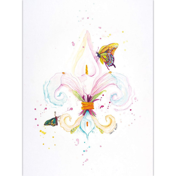 Der farbenfrohe Kunstdruck Fleur de Lil des Künstlers Buttafly ist ein wunderschöner Blickfang an der Wand.
