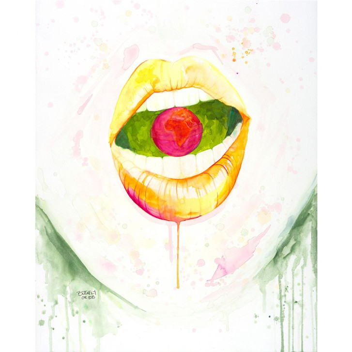 Der farbenfrohe Kunstdruck Tasty World des Künstlers Buttafly ist ein wunderschöner Blickfang an der Wand.