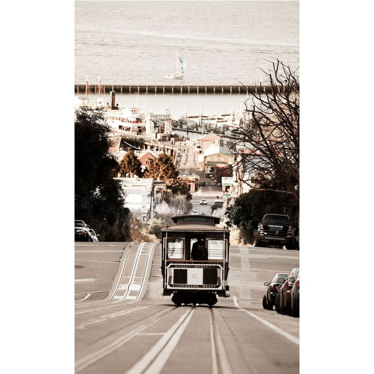 Schmücke deine Lieblingswand mit einem grossen Blick auf die Cable Cars in San Francisco. 1964 wurden die Kabelstrassenbahnen zum Nationaldenkmal der USA ernannt. Heute sind nur noch drei Linien dieses beliebten Verkehrsmittels in Betrieb. Diese Seilbahn fährt von der Market Street zum berühmten Fisherman's Wharf.