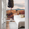 Das Foto von Matteo Colombo zeigt die Landschaft in der Toskana. Ein schmaler Weg führt zu den Einfamilienhäusern. Am Wegesrand steht eine Zypresse, die typisch für diese Gegend ist. Zypressen sind immergrün und bieten mit ihrem dichten Laubwerk idealen Windschutz. Mit der Fototapete Zypressenweg holen Sie sich eine romantische Landschaft, die mediterranes Flair in Ihr Zuhause bringt.