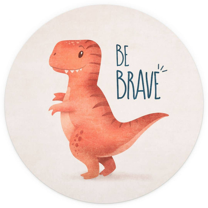 Das Kinderzimmer ist eine Welt für sich. Es ist ein Ort, an dem Kinder ihre einzigartigen Ideen und Träume entwickeln können. Hilf ihnen, die richtige Wanddekoration zu finden, damit sie sich rundum wohlfühlen können. Die runde Fototapete mit dem Motiv der Künstlerin Emel Tunaboylu zeigt einen kleinen T-Rex. Neben ihm steht der Schriftzug „Be Brave“. So wird der kleine rote Tyrannosaurus zum neuen Freund im Baby- oder Kinderzimmer.